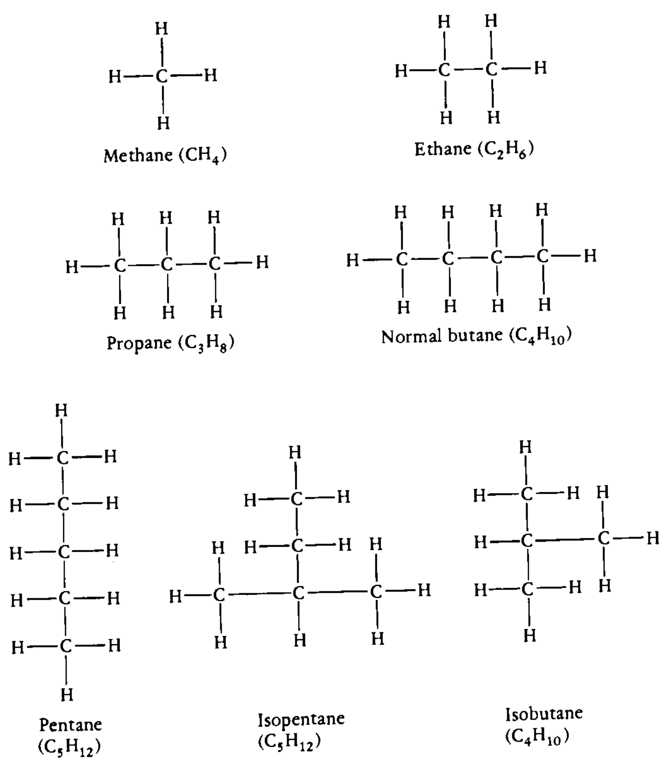 常见烃类气体分子结构
