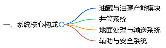 ① 油藏与油藏产能:这是整个系统的资源基础,包括油气储层的地质特征、压力分布、流体性质等,决定了油气的自然产出能力和开发潜力。