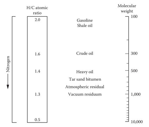 ① 石油化工领域:原油的碳氢比通常在10~20之间(摩尔比),陆相原油碳氢比高于海相原油。高碳氢比原油热值更高,密度和粘度更大。