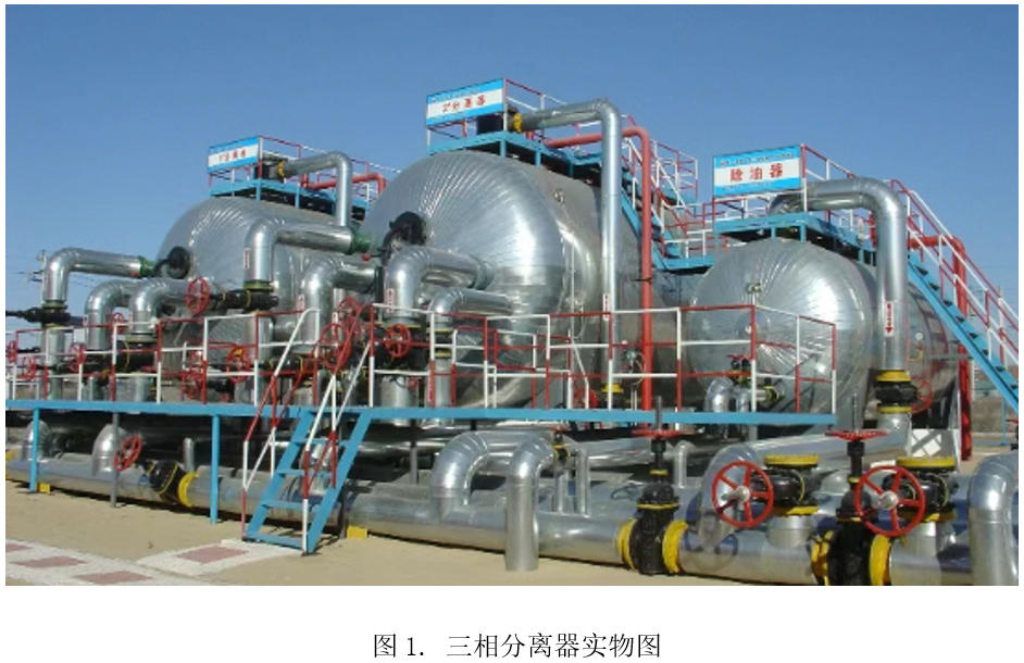 在石油和天然气的开采与生产过程中,原油、天然气和水通常是混合存在的,它们不仅影响着石油生产的效率,也可能对设备和环境造成不利影响。为了分离这些成分,三相分离器作为一种重要的设备,发挥着至关重要的作用,如图1所示。通过它的工作,油、气、水三种成分得以分离,确保后续处理流程的顺利进行,并大大提升了生产过程的安全性和环保性。